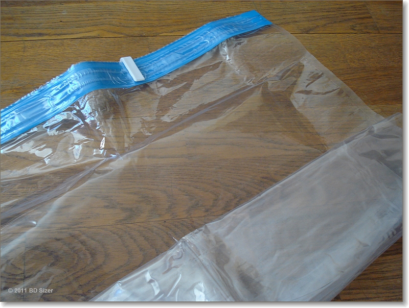 Ok, das ist jetzt vielleicht nicht auf den 1. Blick erkennbar. Nein, es handelt sich nicht um die durchsichtigen, wiederverschließbaren 1-Liter-Plasticksäcke für die Handgepäcksregelung. Die sind sowieso ein Muss und nicht optional. Frag mich, wie viel Gewinn die Hersteller jetzt dadurch eigentlich machen. Whatever, back to the picture: Was ihr hier seht, ist ein Vakuumierbeutel. Man stopft das Ding voll mit Kleidung, presst es dann so zusammen, dass möglichst viel Luft rausgeht und verschließt es dann mit dem Zipp. Das entzieht der Kleidung noch mehr Luft. So nimmt diese weniger Platz im Rucksack weg und man kann mehr Shoppen. 🙂 Oder so. Außerdem gibt’s keine unschönen Knicks in der Kleidung und man sieht von außen, was man eingepackt hat. Lauter schöne Vorteile, hier kommt das Aber: So viel, wie ich erwartet hatte, wird das Volumen dann doch nicht reduziert. Zudem gehen die Verschlüsse manchmal von selbst auf oder werden mit der Zeit (2 Wochen Einsatz) schwächer. Sooo billig waren die auch nicht. Also wohl eher SCHNICKSCHNACK. Gute Idee, mangelhafte Ausführung.