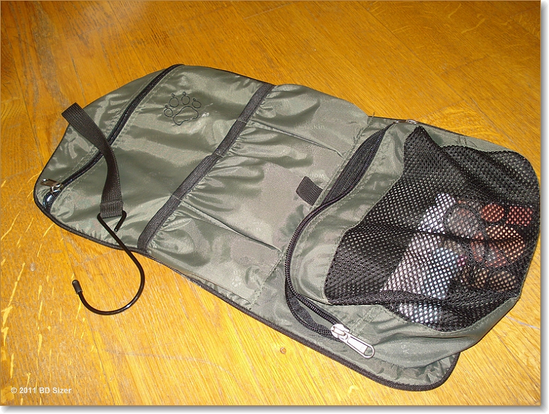 Ich präsentiere meine Jack Wolfskin Toilett-Tasche zum Aufhängen. In der Netztasche lassen sich z.B. Duschgel, Haarshampoo etc. verstauen. Die oberen Taschen eignen sich für kleineren Kram. Schnickschnack oder unentbehrlich? Der Haken zum Aufhängen macht sie für mich zu einem tollen und viel genützten Reiseartikel. Egal wie dreckig oder klein das Bad, irgendwas zum Aufhängen findet sich immer. Haken, Tür, Fenster, Duschknauf selbst,… hatte da noch nie ein Problem. Aber. Die Netztasche unten ist etwas klein. Ein Shampoo und ein Duschgel in durchschnittlicher Größe und es ist schon schwer zu schließen. Da passt dann nur mehr ganz wenig Make-up rein und auch nur eine kleinere Bürste. Die Taschen oben sind eigentlich zu klein für alles, z.B. Zahnbürste kann zwar in offenem Zustand eingesteckt werden, rollt man die Tasche aber wie vorgesehen zusammen,…tja, dann ist die Zahnbürste zu lang. Und wirklicher Kleinkram wie Nagelschere etc. rutscht leicht mal raus. Also eigentlich ist die Tasche teils, teils: Teils sehr praktisch und ich nehme sie seither immer als Reisetoiletttasche (auch bei beruflichen Reisen). Teils unpraktisch, weil ich oft noch ein extra Sackerl einpacken muss, mit den Tuben, die nicht mehr dort rein passen. Langfristig werde ich mir wohl eine größere Toiletttasche genau in der Art zulegen. Frisst zwar mehr Platz, aber den braucht man halt.